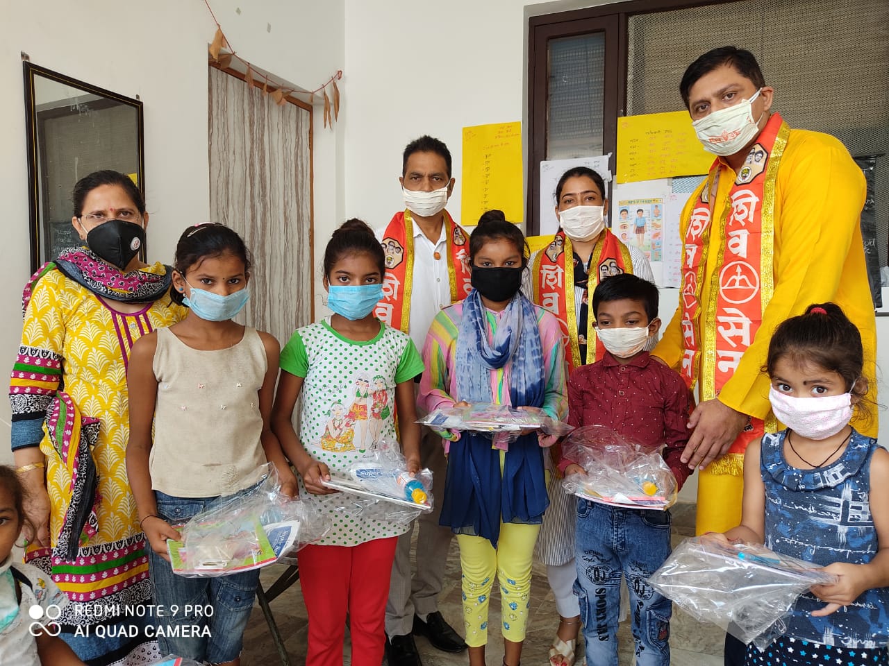 JAMMU: Leaders of Shiv Sena Bala Saheb Thackeray Jammu and Kashmir unit distributed Corona rescue kits alongwith educational material among the school students here today. Servals party leaders under the leadership of party