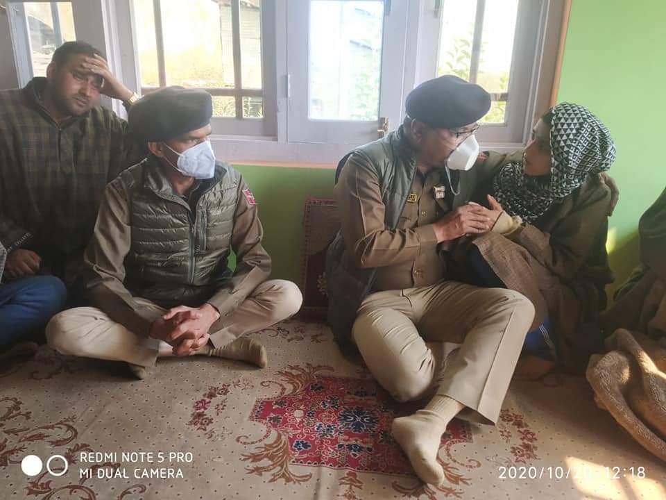 SRINAGAR, 20 October: The Director-General of Police J&K Shri Dilbag Singh visited the family of Police Inspector Mohd. Ashraf Bhat who attained martyrdom in a terrorist attack in Chandpora Bijbehara area of South Kashmir yesterday in the forenoon and in the afternoon he interacted with the families of JK Police martyrs of district Srinagar at DPL Srinagar.
