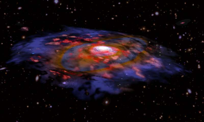 Many of the galaxies were also considered to be relatively grown-up because they showed a diversity in their structures, including the first signs of rotationally supported disks—which may later lead to galaxies with a spiral structure as is observed in galaxies such as our Milky Way. Astronomers generally expect that galaxies in the early universe look like train wrecks because they often collide. “We see many galaxies that are colliding, but we also see a number of them rotating in an orderly fashion with no signs of collisions,” said John Silverman of the Kavli Institute for the Physics and Mathematics of the Universe in Japan.