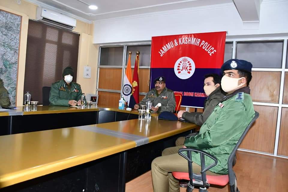 IGP Kashmir Zone Shri Vijay Kumar, DIG CKR Shri Amit Kumar, SSP Srinagar Dr. Haseeb Mughal, SSP Anantnag attended the meeting at PCR, DIG South Kashmir Shri Atul Goel , North Kashmir Shri M. Suleiman Choudhary and other district SSsP of Kashmir Zone attended the meeting via video conferencing.
