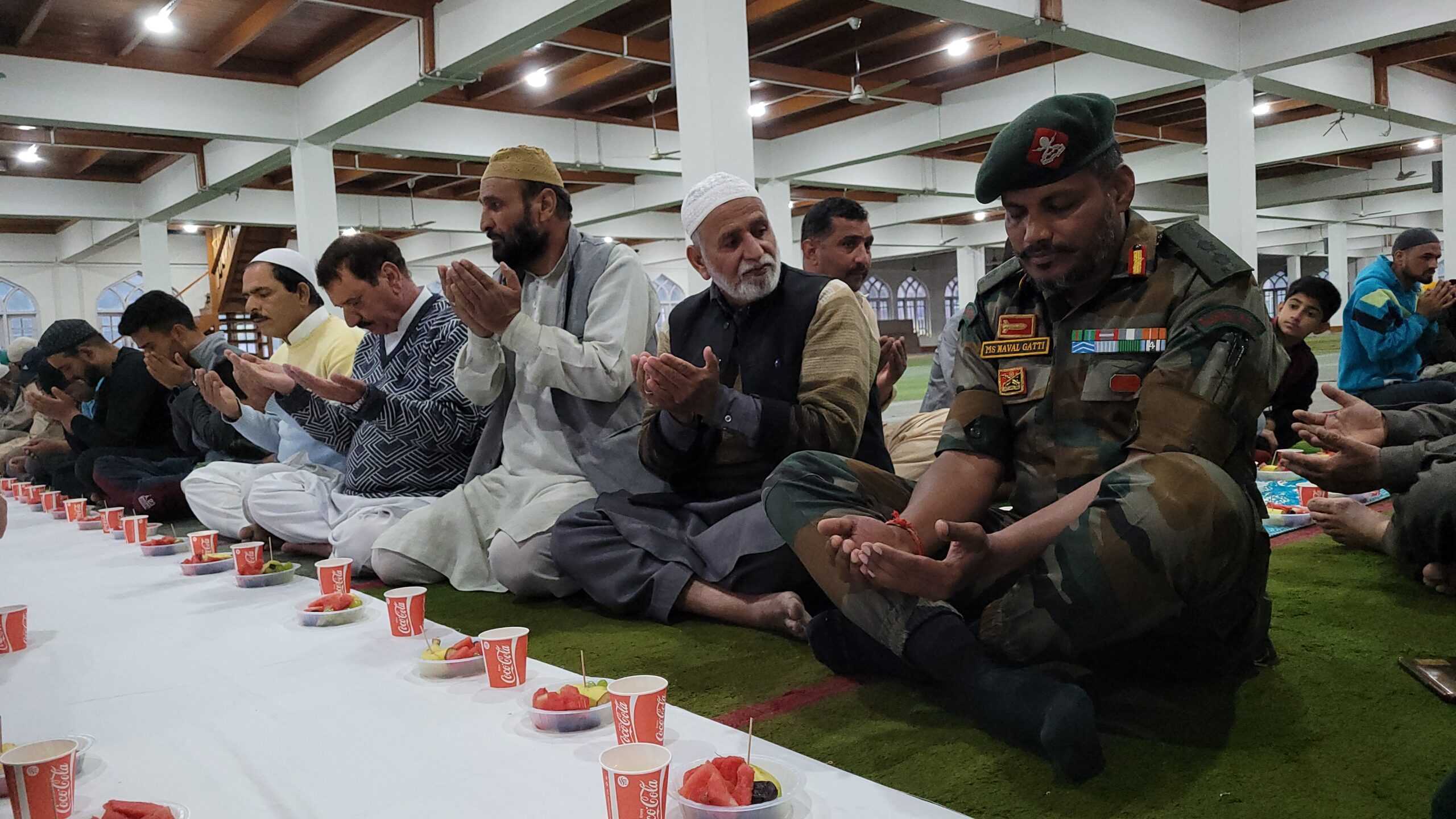 Commanding Officer (CO) of 41 RR Colonel MS Navalgatti Sunday joined the locals along with the Auqaf Committee members of Markazi Jamia Masjid to break the fast.