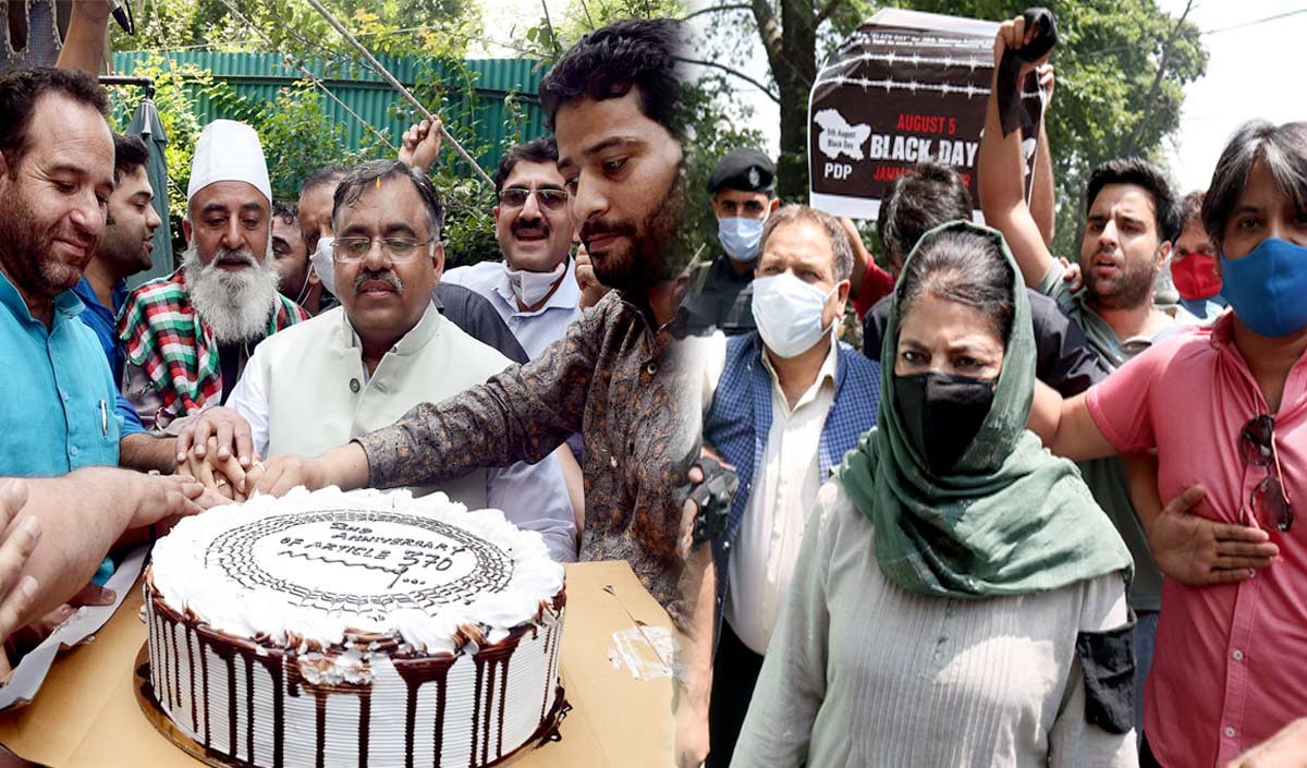 Srinagar Aug 05 :- Article 370 was abolished by the Modi government at the Center three years ago on this day. With this, the state has been divided into two union territories of Jammu and Kashmir and Ladakh. PDP demonstrated in Srinagar on Friday regarding this. The protest was led by PDP chief and former chief minister Mehbooba Mufti. Mehbooba Mufti termed today as ‘black day’ and abrogation of 370 as ‘black verdict’.