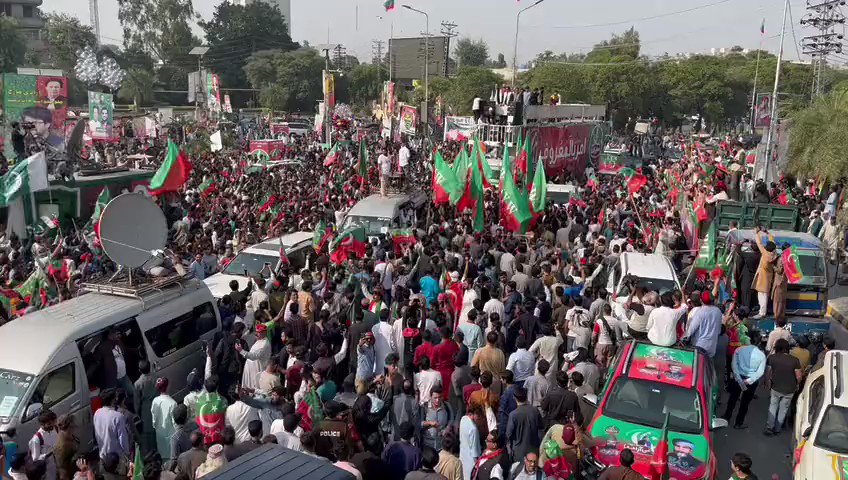Imran Khan’s supporters converge on Lahore’s Liberty Chowk to launch protest march for fresh elections