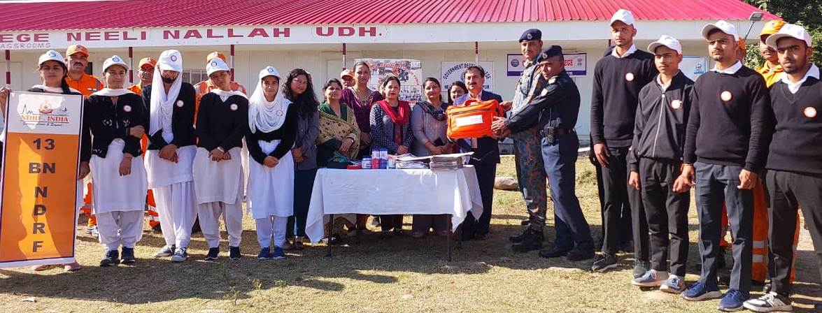 UDHAMPUR, NOVEMBER 23: Government Degree College Neeli Nallah Udhampur, in collaboration with NDRF Unit Udhampur, J&K (UT), today organised  Awareness Programme on ‘College Safety’ on the college campus  here under the Guidance of Prof Hans Raj, Principal of the college.