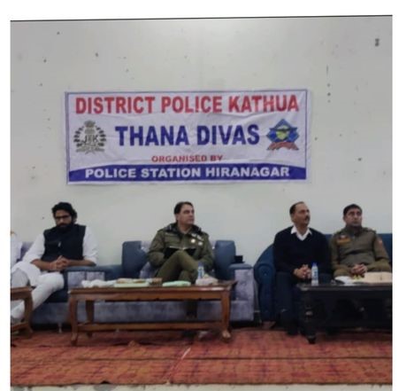 Kathua; 24 NOV : As a part of public outreach programme, “THANA DIWAS” an initiative of Government of J&K UT was organised by the Kathua Police at Town Hall Hiranagar in the jurisdictional area of PS Hiranagar.