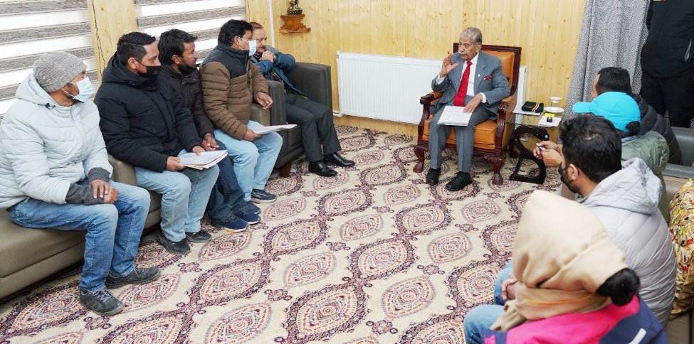 Lobzang apprised the LG about various demands including the sanctioning of a new administrative block for Stoth area, approval for a Community Health Centre at Stoth area, construction of Akshow-Paddar road, construction of Patum Lungpa to Akshow irrigation canal, construction of civil helipad at Stoth area and construction of Akhshow-Paddar Trekking Route.