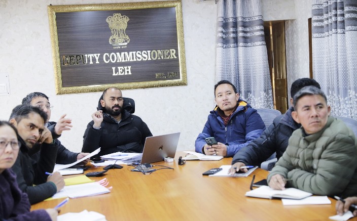 Leh, Feb 11: Deputy Commissioner, Leh, Santosh Sukhadeve chaired a meeting to discuss the proposals submitted under Vibrant Villages and Saturation of Centrally Sponsored Schemes in the villages on February 9 in the VC Room of DC office, Leh.