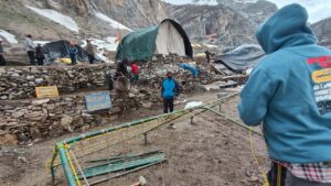 Despite the challenging weather conditions, the team has been up to the mark in setting up tents, makeshift sheds, and other facilities to accommodate the pilgrims comfortably.