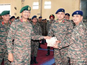 Jammu, June 27: The Northern Army Commander Lieutenant General M V Suchindra Kumar visited various formations in Jammu and Kashmir’s Udhampur district to review the operational preparedness of troops in the region, officials said on Thursday.
