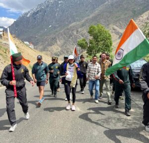 Sufiya’s challenging journey commenced from Galwan and is set to culminate at the Kargil War Memorial in Drass. Today’s leg of the run saw her cover the distance from Budhkharbu Camp to Kargil City Camp, traversing the Namik La Pass at an impressive altitude of 12,100 feet. Demonstrating solidarity and respect, athletes from the Trespone Adventure Sports Club, under the leadership of international athlete and coach Sajjad Hussain, accompanied Sufiya from Tharumsa Pashkum to the helipad in Kargil.