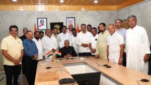 Leh, July 07: Lieutenant Governor of Ladakh, Brigadier (Dr) BD Mishra (Retd) met the members of the Committee on Public Accounts from Karnataka Legislative Assembly on the Study Tour to Ladakh led by the Chairman of the Committee, CC Patil, at the Lieutenant Governor’s Secretariat. Advisor to the LG, Dr Pawan Kotwal, IAS, and ADGP Ladakh, Dr SD Singh Jamwal, IPS, were present in the meeting. The Committee on Public Accounts from Karnataka Legislative Assembly are on a study tour to Ladakh from July 4 to 7.