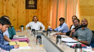 Leh:- The Advisor to the Hon’ble Lieutenant Governor, UT Ladakh, Dr Pawan Kotwal, convened a meeting to review the progress of schemes and works under the Vibrant Village Programme (VVP) at the Civil Secretariat, Leh.