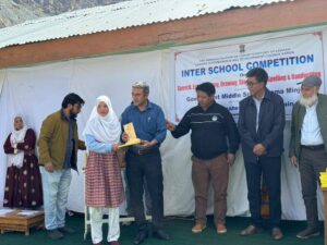 Kargil, Sept 04: An inter-school competition featuring various categories, including speech, essay writing, drawing, storytelling, spelling, and handwriting, was successfully held today at Government Middle School Goma Minjee. The event, which drew participation from all government schools within the Baroo-Minjee Constituency, was organized in collaboration with the Councillor of the Baroo-Minjee Constituency.