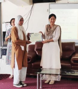 Fiza Banoo (3rd sem student) presented a speech on status of Hindi in Ladakh followed by recitation of poetic lines of Harivansh Rai Bachchan Ashok Prabhat and Ram Dhari Singh by Mohammad Issa (3rd sem student) , Villayat Ali (3rd sem) and Madam Niharika (Skill instructor) respectively.
