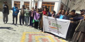 In Panchayat Halqa Takmachik of Khaltse Block, the campaign saw an energetic start with a Swachhata run, cyclothon, and marathon organized by the Rural Development Department in collaboration with the Education and Health Departments. The events, which also featured a human chain, aimed to promote both fitness and cleanliness. Participants, including local residents, panchayat secretaries, and school students, joined hands to highlight the importance of cleanliness and community spirit.